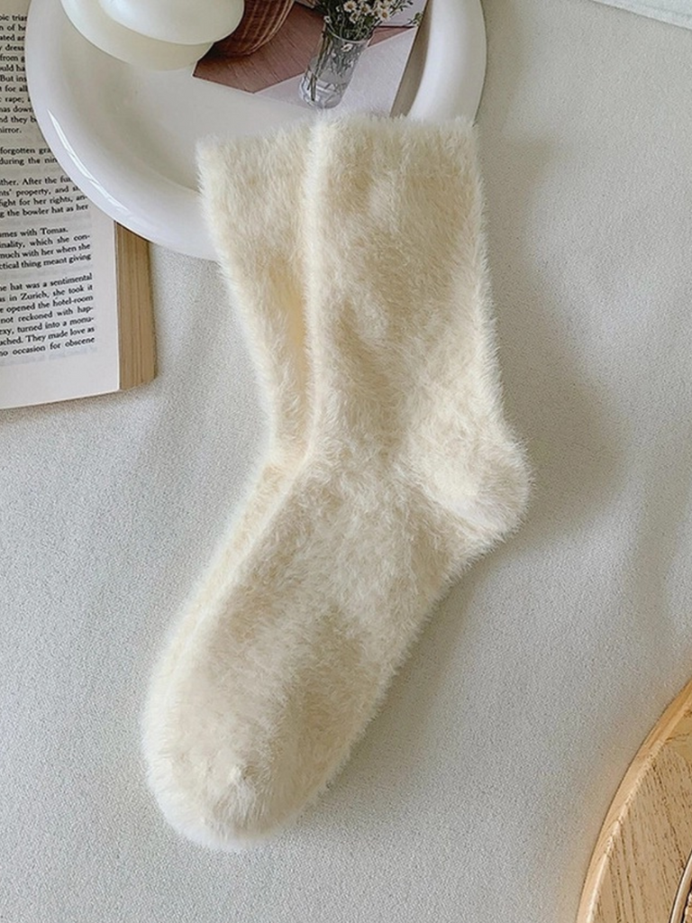 Women's Ivory Fuzzy Socks